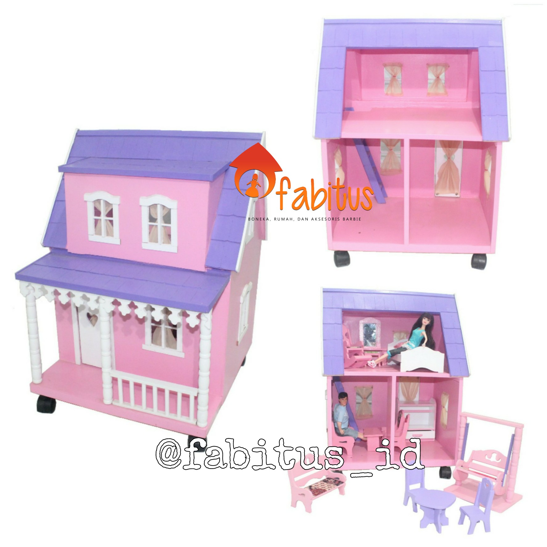 ✓ 2 lantai, uk 55x55x70 cm, ukuran ruangan sesuai boneka barbie